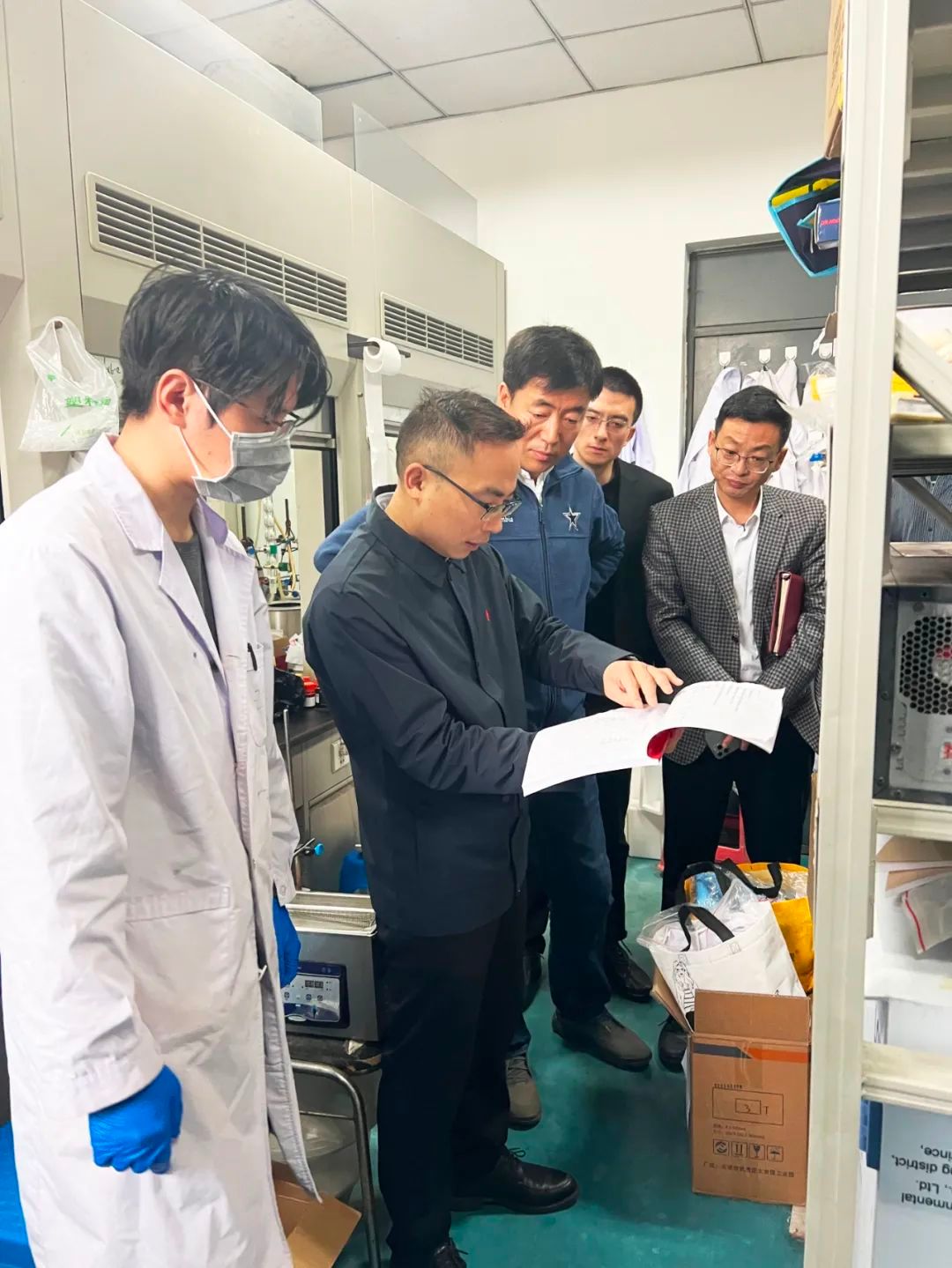 齐炼文在检查过程中与公司领导班子成员及师生亲切交流,详细了解公司实验室日常安全管理情况,深入了解师生在实验室安全管理的重点和难点。重点对危化品的存储、使用、回收等关键环节进行了严格检查,并对检查中发现的问题和隐患提出了明确的整改要求和指导意见。
