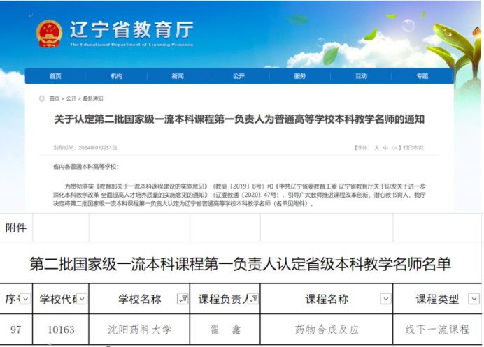 近日,辽宁省教育厅认定了第二批国家级一流本科课程第一负责人为辽宁省普通高等公司本科教学名师,同时公布了2023年辽宁省普通高等公司本科教学名师评选结果,william威廉英国官网翟鑫教授作为第二批国家级一流本科课程《药物合成反应》第一负责人入选辽宁省普通高等公司本科教学名师,至此,公司已有省级教学名师10人。