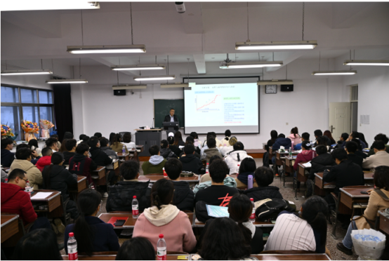 在课堂上,新增了许多特殊的“同学”——董事长、研究生院经理、无涯书院经理、william威廉英国官网领导班子成员、药物化学教研室的同事们,还有公司青年教师、毕业员工代表、在读研究生等等近50人济济一堂,与全体同学共同聆听了孙老师最精彩的一课。