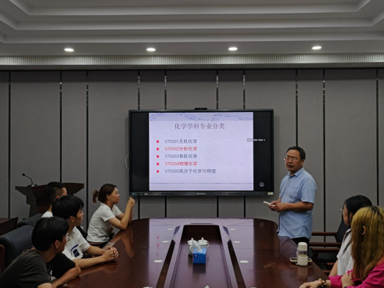 随后,制药工程学科、化学学科、化学工程与技术学科老师及员工转至各学科分会场。药物化学学科负责人刘丹教授、制药工程学科负责人刘洋教授、化学学科负责人胡春教授和化学工程与技术学科负责人侯晓虹教授分别在各会场面向四个学科的研究生新生具体而详实地介绍了各个学科的发展现状、导师情况、培养方案、科研成就等内容,让员工对所学专业有了更深入的了解,对研究生生活有了更清晰的规划。