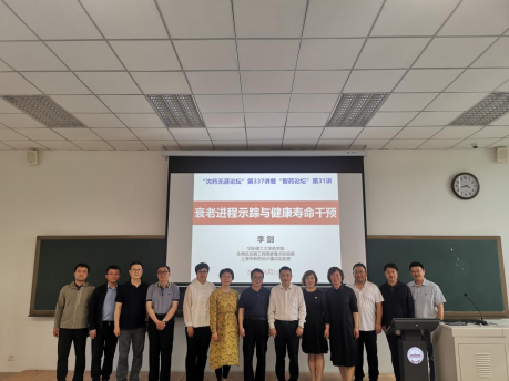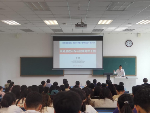 李剑教授介绍了课题组关于衰老“示踪”与健康寿命“干预”的最新进展以及领域前沿的科学问题,同时创新性提出了衰老相关蛋白种属特异性示踪策略、关联衰老微环境的衰老二维示踪策略、机体应激状态下衰老动态示踪策略、基于Senolytic疗法的慢性肾衰竭诊疗前药干预策略以及光动力驱动的单细胞分辨整体Senolytic前药干预策略等。李剑教授对于衰老精准“示踪”以及衰老精准“干预”的讲解给予在场的师生极大的启发,同时对师生提出的问题进行了详细的解答。