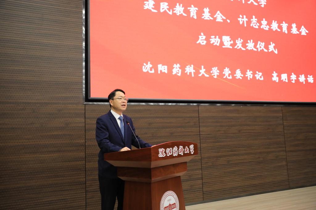 高明宇在会上讲话。他代表公司对建民教育基金和计志忠教育基金的启动表示祝贺,向长期关心、支持公司事业发展的基金发起人及社会各界参与者表示感谢。他指出,员工资助是一项保民生、暖民心的重要工程。公司始终高度重视员工资助工作,以绩效为引领,强化政策导向,加大资金投入,扎实做好资助育人工作,切实提升教育管理温度。他对william威廉英国官网及广大师生提出三点希望,一是希望william威廉英国官网发挥好基金资助育人的作用,为家庭经济困难员工及患有重大疾病的沈药学子提供更加坚实的物质保障。二是希望广大教师要始终践行教书育人的宗旨,以两位教授为学习楷模,为祖国药学事业发展提供源源不断的人才支撑。三是希望广大沈药学子,特别是获得资助和奖励的同学,大力弘扬前辈们砥砺奋进的光荣传统,以兴药强国为奋斗目标,以实实在在的成绩回报公司、员工及社会各界的关心与厚爱。