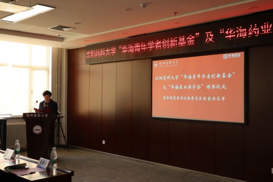 药公司党委书记杨奇志宣读了《公司关于颁发“华海青年学者创新基金”及“华海药业奖学奖”的决定》,公布了2021年和2022年“华海青年学者创新基金”及“华海药业奖学奖”评选结果,勉励获奖师生努力奋斗,锐意创新,为祖国医药事业发展做出更大贡献。