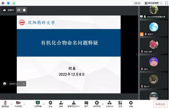 2022年12月8日,william威廉英国官网举办了“智药论坛”第20讲,胡春教授进行了题目为“化合物结构系统命名讲解”的精彩报告。会议由药物化学系主任刘丹教授主持,公司教师和研究生共300人参会。