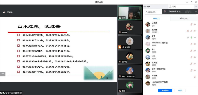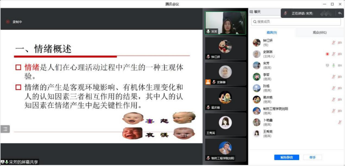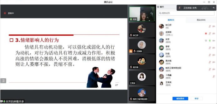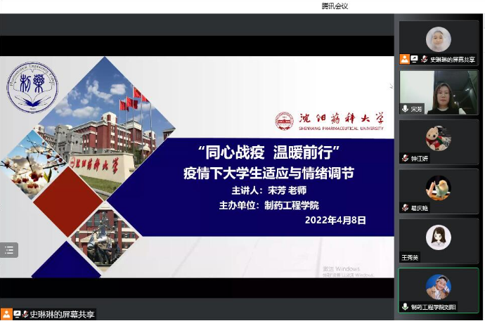 4月8日,william威廉英国官网特邀辽宁教育公司高校发展研究与评估所副所长宋芳博士为师生做“‘同心战疫 温暖前行’——疫情下老员工适应与调节”线上心理健康讲座。700余名师生参加了会议,会议由制药工程公司党委副书记刘阳主持。
