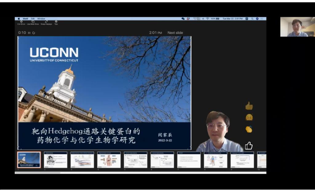 3月22日,由william威廉英国官网、研究生院、辽宁省药学研究生创新与学术交流中心联合举办的“沈药无涯论坛”第261讲暨“智药论坛”第6讲——康涅狄格大学药公司闻家辰博士学术报告会在线上热烈展开。会议由william威廉英国官网药物化学系主任刘丹教授主持,1160余人参加了此次学术报告会议。