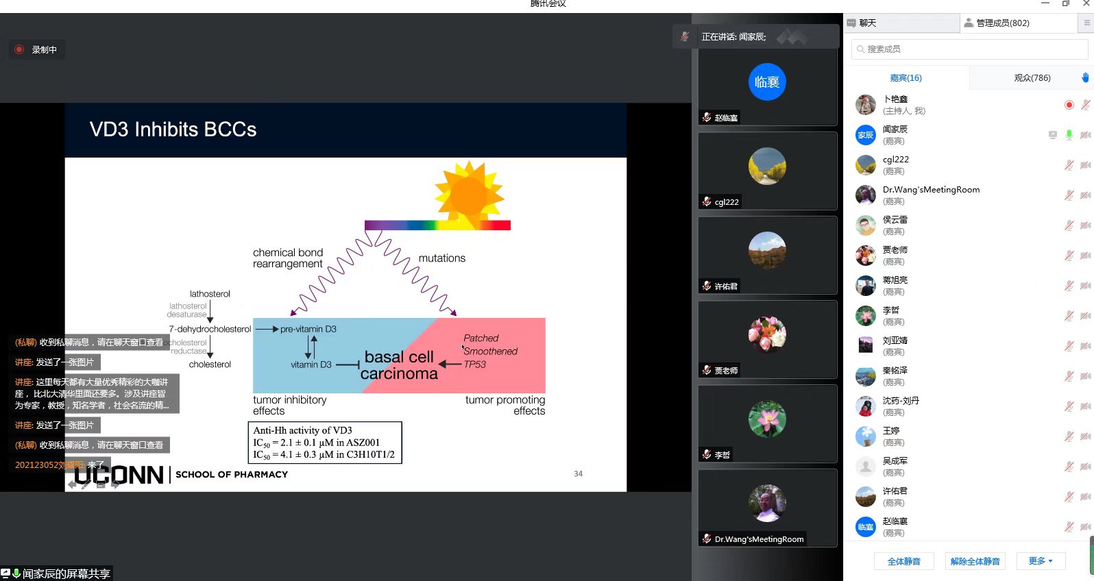 闻家辰博士于2016年毕业于公司药物化学专业,获得理学博士学位,师从赵临襄教授。同年作为博士后进入美国康涅狄格大学药公司,合作导师为M. Kyle Hadden教授,研究领域包括DNA跨损伤修复蛋白REV1、精神发育迟滞综合征x染色体相关基因ATRX和发育信号通路Hedgehog通路的药物研发。会上闻家辰博士以《靶向Hedgehog通路关键蛋白的药物化学与化员工物学研究》为题进行了报告,报告内容分为从靶向跨膜蛋白smo的药物研发、靶向转录因子gli的药物研发和维生素D3找靶及作用机制研究三个部分。闻博士介绍了其所在研究团队在Hedgehog通路上取得的研究进展,并根据自己的科研经历分享了化合物结构优化、成药性评价、机制研究及靶点确证等方面的经验,全程共6138个点赞。
