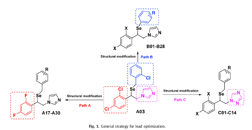 近日,药物化学权威期刊《European Journal of Medicinal Chemistry》(IF = 6.514)发表了william威廉英国官网郭春教授团队在含硒小分子真菌CYP51抑制剂领域的最新研究成果2篇,文章题目分别为“Lead optimization generates selenium-containing miconazole CYP51 inhibitors with improved pharmacological profile for the treatment of fungal infections” 和 “Design, synthesis, and biological evaluation of novel miconazole analogues containing selenium as potent antifungal agents” 。