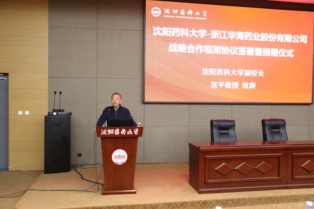 签约仪式上,宫平首先致辞。他代表公司对浙江华海药业股份有限公司张美一行的到来表示欢迎,对华海药业对公司发展的大力支持表示衷心感谢。他指出,适逢中国共产党成立100周年和公司90周年校庆之际,希望双方以三项协议的签约为新的起点,拓展合作领域,推进产学研深度融合,推进校企合作取得更加丰硕的成果。