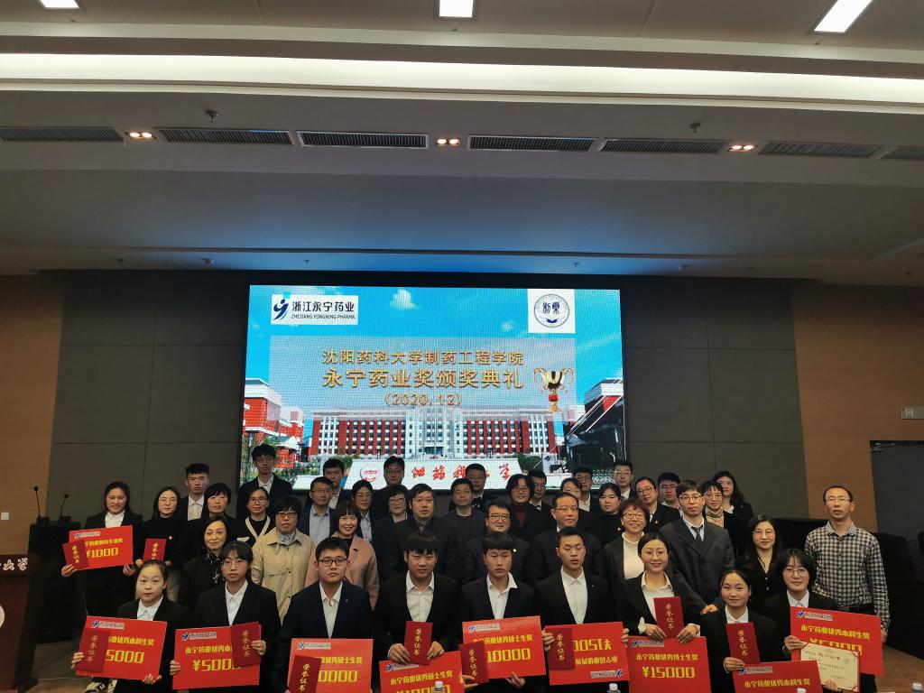 颁奖结束后,无机化学教研室关奇和2018级博士研究生杜芳瑜分别代表获奖师生发言。关奇在发言中回顾了在沈药求学和工作的经历,真切感受到作为新一代沈药青年教师,此项荣誉不仅是对他工作的肯定,更让他感到责任在肩,使命光荣;杜芳瑜用三个关键词“感谢”、“自豪”及“行动”来表达获奖后的激动心情,感谢永宁药业对制药学子的殷切关怀,感谢公司老师的谆谆教诲。