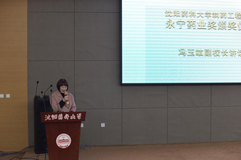 最后,公司党委常委、副董事长冯玉竑发表讲话,对永宁药业投资教育的社会担当表示感谢和赞赏,公司将充分发挥人才和智力优势,积极为永宁药业的全面发展提供人才资源和科研支持,建立产学研优势互补机制,架牢校企合作的桥梁。她希望广大师生珍惜党和国家以及母校的辛勤培养,感恩于心,回报于行,传承红色基因,展现沈药人的使命与担当,以实际行动积极为沈药的发展贡献自己的力量。