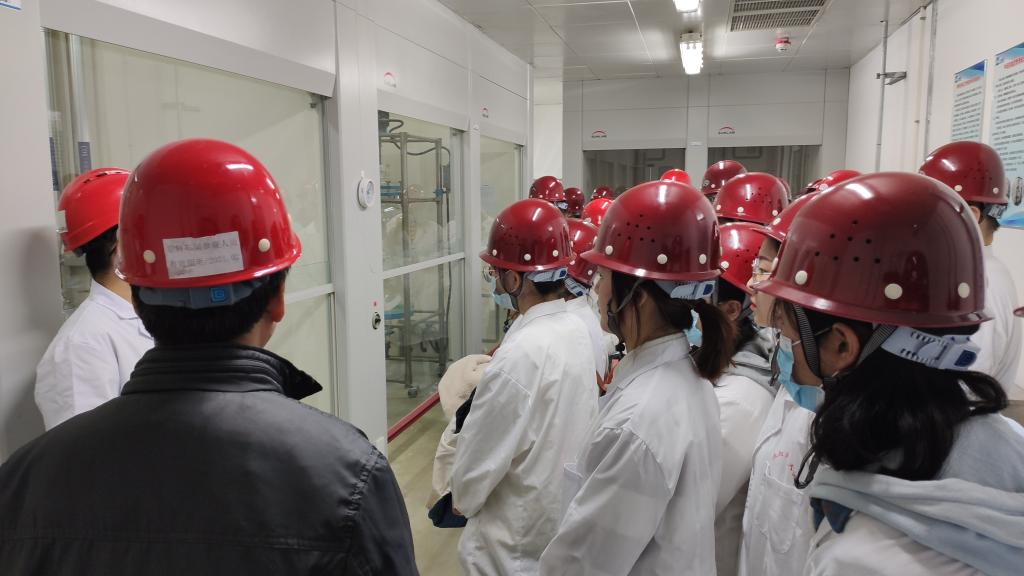在实习期间应用化学专业全体员工先后参观了上海医药集团(本溪)北方药业有限公司质检大楼、原料研发车间和辽宁科硕营养科技有限公司左旋肉碱生产车间。在北方药业质检大楼,企业技术人员对科研实验室常用的气相色谱仪、液相色谱仪、自动熔点仪等仪器进行了详细的介绍。在原料研发车间,员工们重点参观了原料药合成工艺研究室中试实验室,对进行中试的各种设备有了一定的了解,对车间防爆知识有了一定的认识。在辽宁科硕左旋肉碱生产车间,员工们重点学习了环氧氯丙烷拆分和季铵盐的制备所涉及到的生产工艺、流程、设备和相关的仪表知识。在整个实习过程中,员工们实现了从实验室到中试实验室再到生产车间全过程的学习,认识了很多教学实验中认识不到的仪器设备,学习到了很多企业进行中试和生产的相关知识。