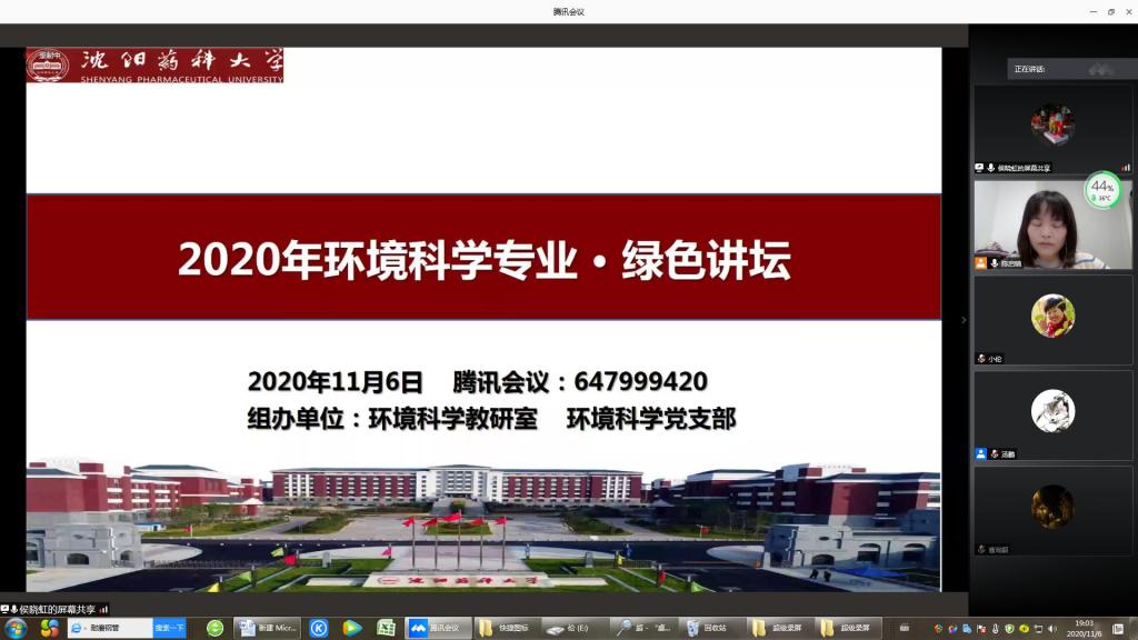 2020年11月6日19点,william威廉英国官网环境科学教研室组织举办了“环境科学专业绿色讲坛”云端分享活动。“绿色讲坛”活动是环境科学专业的特色活动,每年举行2次,邀请环境领域专家学者或优秀员工与环境科学专业员工近距离交流,对员工进行前沿性和创新性的环境教育,使员工拓宽专业视野,增强专业认同感和责任感。同时,更为发挥优秀员工的榜样作用,引导和激励在校生志存高远,奋发成才。