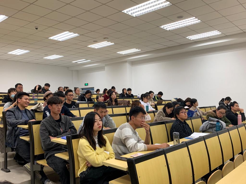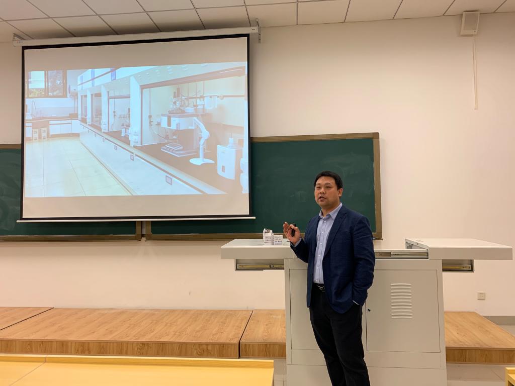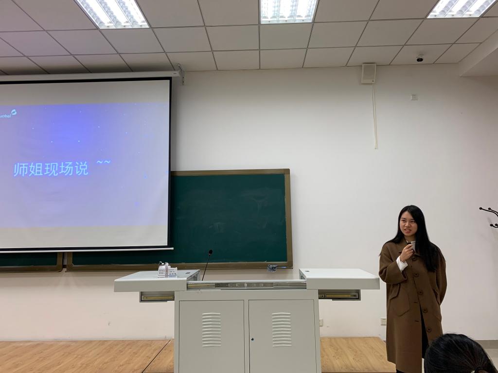 宣讲会伊始,王世辉所长对朗华制药有限公司及其下设子公司做了详细介绍,从“我们是谁”、“为什么选择我们”、“我们需要什么样的人才”三个角度介绍了企业的规模、环境、产品、主营业务、福利待遇及应聘要求。随后,现就职于朗华制药宁波诺柏医药的2020届研究生王楚员工为到场同学们介绍了这几个月以来工作的感受和感悟。王楚说,入职几个月,在这里经历的是职场的磨练,感受到的是来自大家庭的温暖,收获的是自身能力的提高,现在的她对未来前程充满期待,王楚员工的经验分享为同学们求职应聘提供了更多的参考。