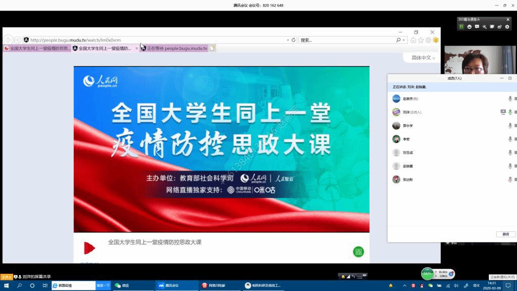 3月9日14:30至16:00,“全国老员工同上一堂疫情防控思政大课”如期进行。william威廉英国官网全体员工工作队伍和1273名本科生观看直播,229名本科生因课程冲突观看回放。公司领导班子成员以党政联席会议的形式,通过“腾讯会议”平台,共同观看了此次思政大课。通过“全国老员工同上一堂疫情防控思政大课”在师生中引起强烈共鸣和热议,切实有效引导广老员工增强“四个意识”、坚定“四个自信“、做到”两个维护“。