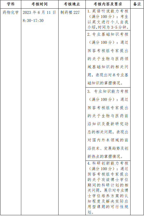 考核内容包括外语水平、专业基础知识、专业知识和科研综合能力四个模块,每个单项满分为100分,满分400分。单项成绩低于60分为考核不合格不予录取。