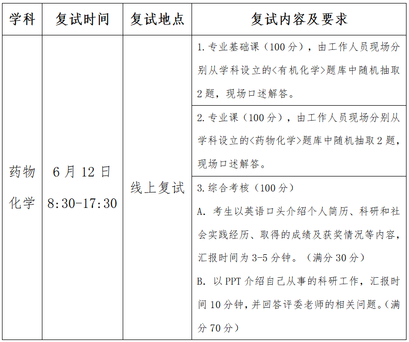统一考试入学复试内容包括专业基础课、专业课以及综合考核三部分,其中,专业基础课100分、专业课100分以及综合考核100分,专业基础课和专业课主要以《2022年博士研究生招生专业目录》考试科目为依据。