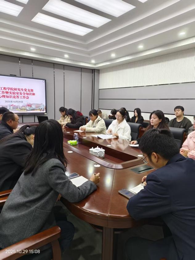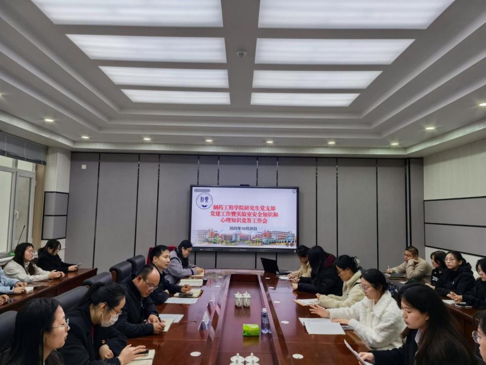 为深入推进党建工作与学科特色、员工培养深度融合,以党建引领实验室安全管理提质、心理健康教育增效,10月 29日下午,公司研究生党支部在制药楼227室召开党建工作部署会暨实验室安全知识与心理知识竞答工作会。公司党委书记王中华出席并讲话,党委副书记刘鹏程主持会议。公司组织员仲恒、丛璐,研究生辅导员钟梓俊、盛志成、刘薇薇以及各研究生党支部员工代表参会。