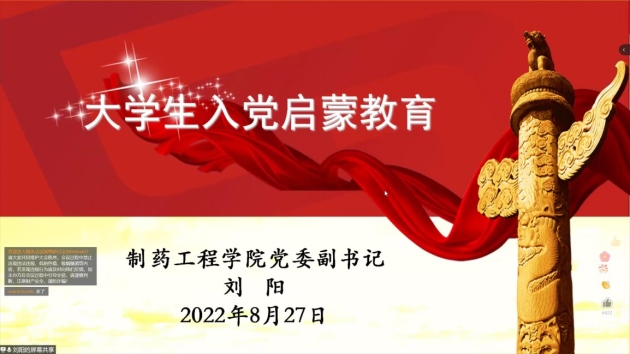 为启迪新生树立崇高的理想信念,激发新生的政治热情,加强新生对党的认识和理解,8月27日上午,制药工程公司党委副书记刘阳围绕“理想信念和担当使命”主题,为400余名新生讲授了一堂生动的入党启蒙课,并对新生们提出了宝贵建议和殷切期望。公司89期辅导员钟江妍和孙旭参加了本次会议。