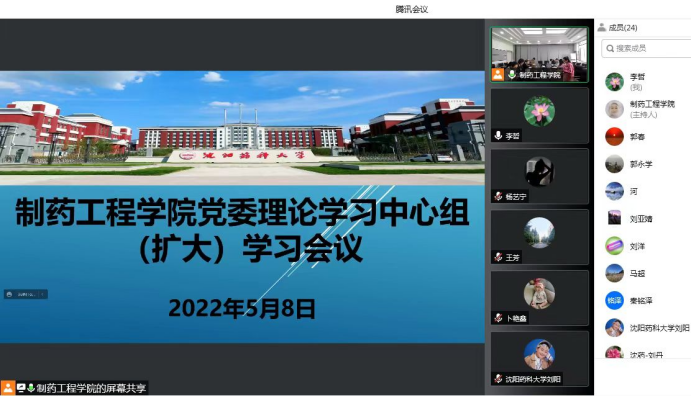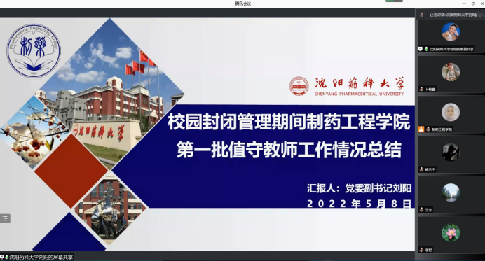 为进一步做好公司新冠肺炎疫情防控工作,充分提高全院师生政治意识、责任意识,树立“抗疫有我”的社会担当和“抗疫必胜”的信心,按照省教育厅、省委教育工委和公司疫情防控工作的部署要求,制药工程公司党委理论学习中心组(扩大)学习会议于5月8日上午召开,通过线上平台开展疫情防控专题学习,研究落实进一步从严抓好公司疫情防控各项工作。院领导、党委委员、纪委委员、院工会主席、党支部书记,系主任、实验中心主任、教研室主任、教研室副主任,院办全体人员及全体辅导员参加会议。公司第二批值守教师在公司227会议室参会,会议由公司党委书记李哲主持。