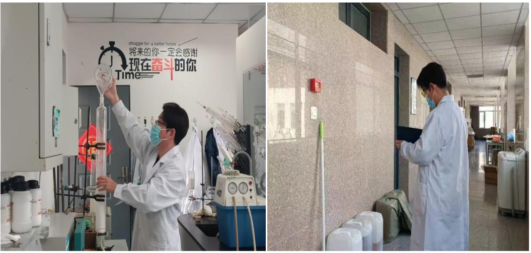 自3月15日公司实行封闭管理,吴成军就坚定的留在了南校区疫情防控第一线,逆行而上留守校园,不忘初心冲锋在前。公司实验室易燃易爆化学品较多,研究生在没有老师现场指导的情况下做实验,存在一定的风险,吴成军承担起守护制药楼实验室安全的重任。他每天不定时在楼内进行安全检查,将发现的问题及时通知相关实验室负责人进行整改,并在每天4点前,对各实验室的安全情况进行统计,将统计结果按时上报公司。保障公司实验室安全运转,确保每一名同学平安科研,对他来说就是最幸福的事。