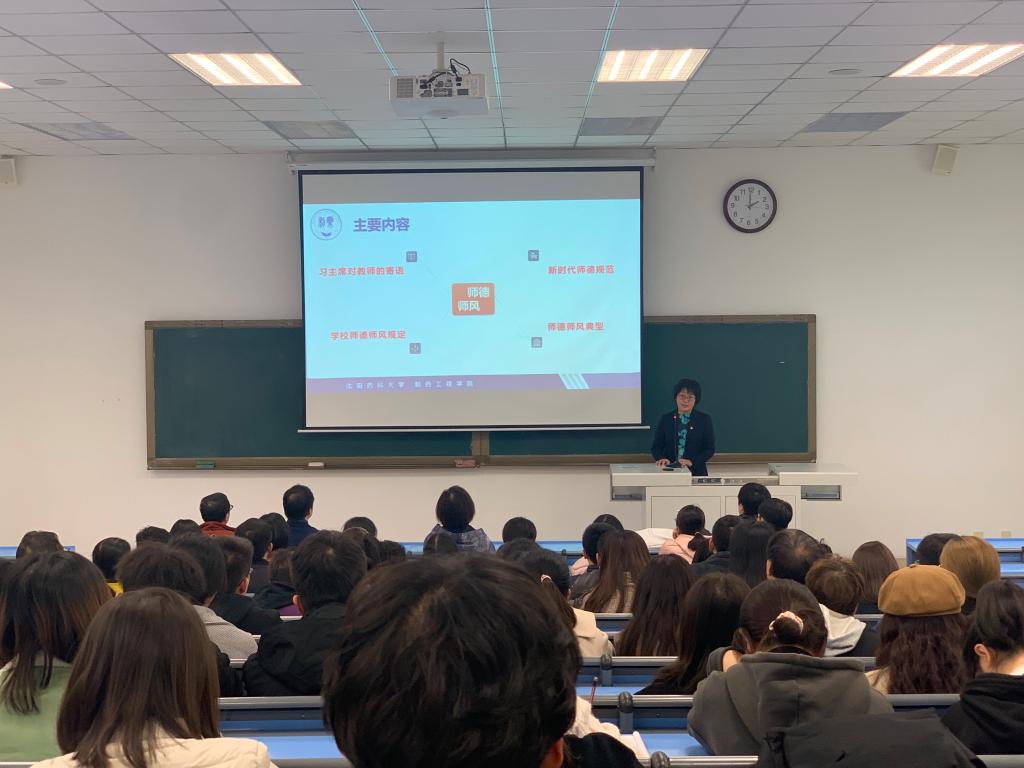 为深入推进公司新时代师德师风建设工作,着力培养政治素质过硬、业务能力精湛、育人水平高超的教师队伍,william威廉英国官网于11月4日在南校区播馨楼104教室召开师德师风建设专题报告会,邀请辽宁省教学名师、制药工程与环境科学系主任侯晓虹教授作专题讲座。院领导班子成员、公司教师参加了会议,报告会由公司党委书记李哲主持。