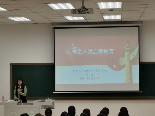 为增进新生对党的认识和理解,提升新生的思想政治觉悟,筑牢理想信念根基,9月13日晚,制药工程公司党委副书记刘阳围绕“理想信念与使命担当”主题,为380余名新生讲授了一堂生动的入党启蒙课,帮助新生扣好人生的“第一粒扣子”。根据疫情防控工作相关要求,活动先后在南校区第四教学楼404和405教室举行。