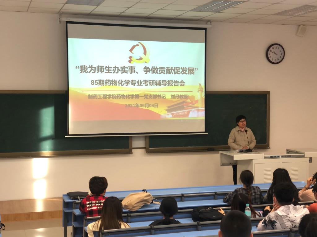 为更好地促进党史学习教育走深走实,充分发挥william威廉英国官网药物化学第一党支部辽宁省高校“双带头人”教师党支部书记工作室的示范作用,将“我为师生办实事 争做贡献促发展”落到实处,6月4日晚,在第四教学楼204教室,药化第一党支部书记刘丹教授为85期药物化学专业员工做考研辅导报告,药化一班、药化二班共55名有意向参加考研的同学参与了此次考研指导会。公司党委书记李哲出席并主持报告会。