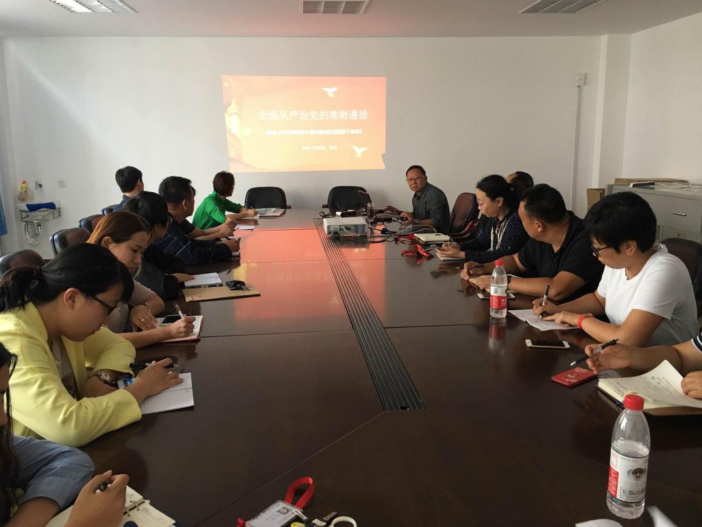 首先,张伟书记以PPT的形式做中心发言,张伟书记以“全面从严治党的准则遵循”为题,从“党内政治生活的实践与探索是《准则》的源泉、严肃党内政治生活是解决党内存在问题的重要途径、党内政治生活必须以党章为根本遵循、坚定理想信念是加强和规范党内政治生活的首要任务、坚持党的基本路线是加强和规范党内政治生活的根本保证、加强和规范党内政治生活的重要目的是坚决维护党中央权威、严明党的政治纪律是加强和规范党内政治生活的重要内容、保持党同人民群众的血肉联系是加强和规范党内政治生活的根本要求、坚持民主集中制原则是加强和规范党内政治生活的制度保障等九方面详细解读了《关于新形势下党内政治生活的若干准则》。接下来,张伟书记结合公司党建工作的实际情况,逐条解读了辽委办发〔2017〕15号-《关于严格党的组织生活制度的意见》的文件精神。